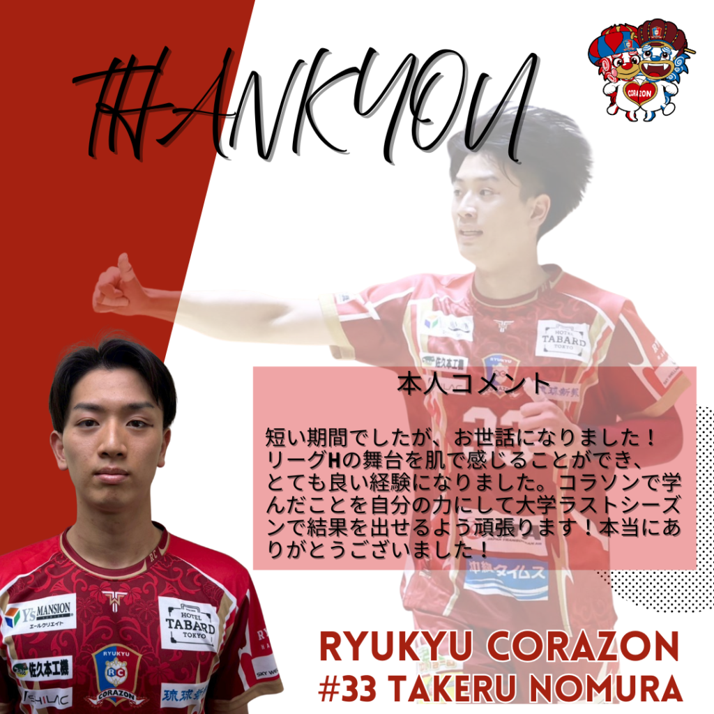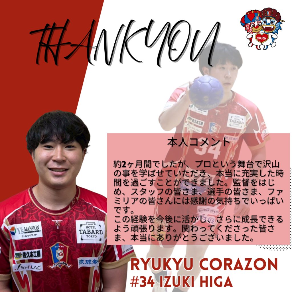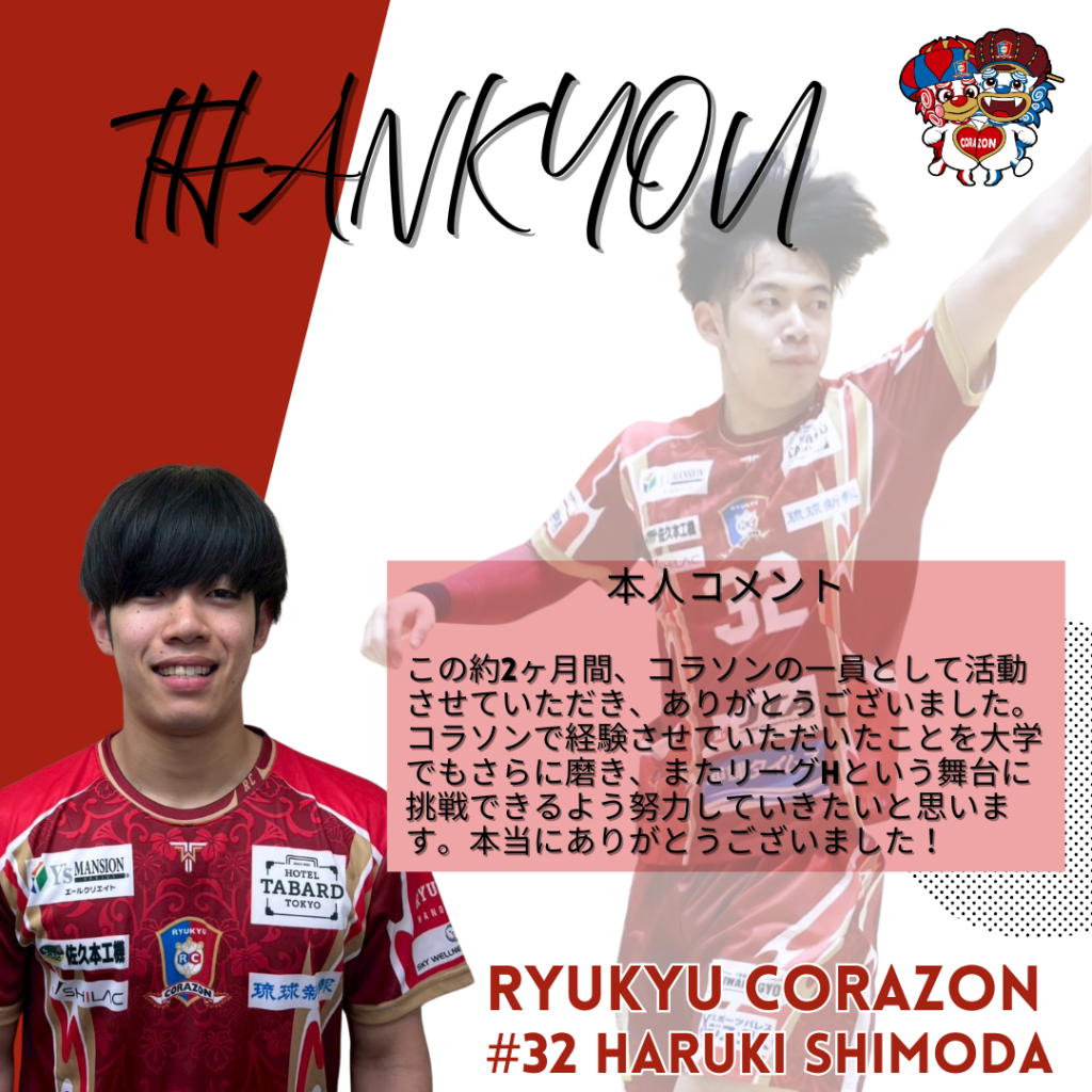 この度、期限付きで移籍をしておりました、下記選手との契約が満了となり、自チームに戻ることになりましたのでご報告いたします。