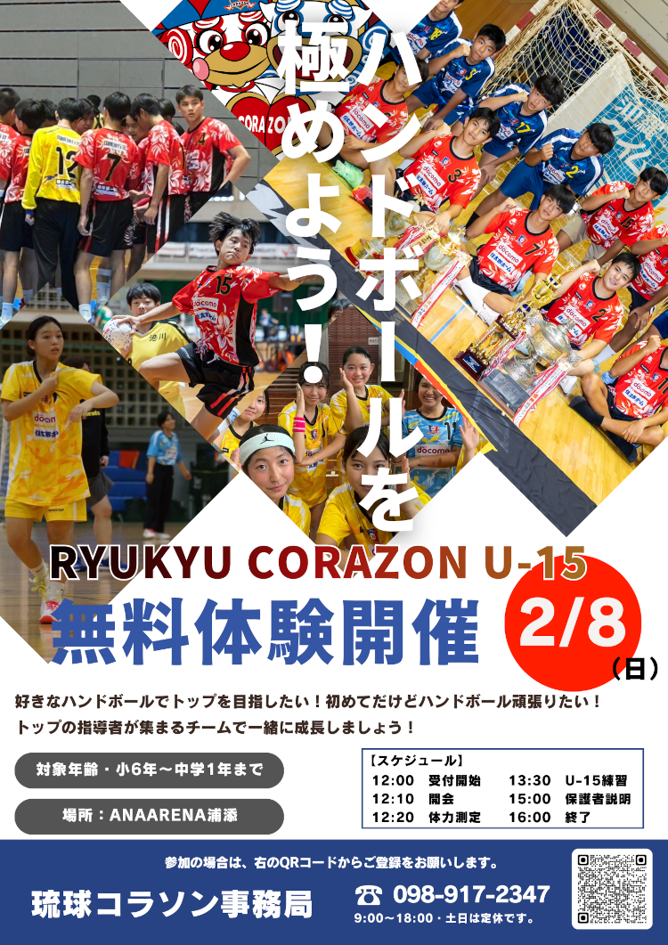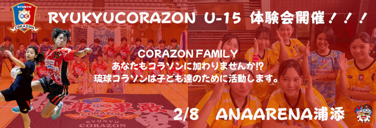 今回、下記日程にて、琉球コラソンU-15の体験会を開催いたします。