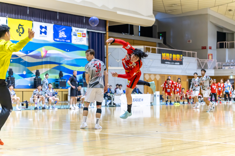 後半スタートは相手が1人退場しており数的有利な状況から始まる。そのチャンスをしっかりと活かしNo.2野尻のシュートで3点差に縮める。しかし、相手の厳しいDFなどで差を縮めることができず、逆に開始7分では7点差に広げられてしまう。これ以上離されてはという場面で、No.18潘の華麗なシュートで相手に傾いた流れを引き戻す。