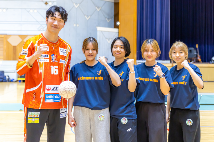 沖縄大学を代表して、ハンドボール部女子の皆様による始球式贈呈が行われました。
