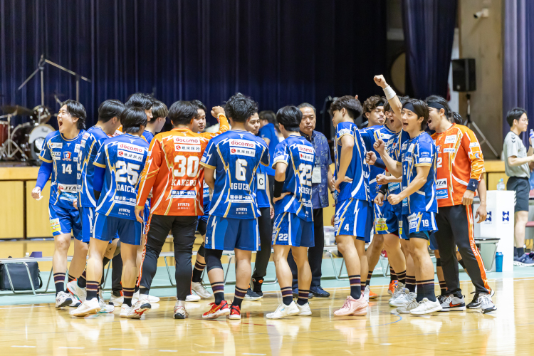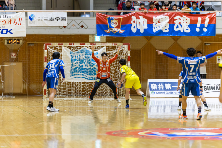 後半もリズムが良くならないコラソンだが、No.16秋山が7mTスローを2本止めるなどチームのピンチを救う。大阪OFをなかなか止めれない中で、流れが来たのは10分からだった。No.10比嘉の速攻を大阪が横からとめたということでレッドカードとなり、コラソンにチャンスが訪れる。No.2野尻、No.17植村、No.7石川、No.22松川の4連続得点で22-26とし、大阪がタイムアウトを要求。ここから膠着状態が続く中で、なんとか追いつき追い越したいところで活躍をみせたのは、No.16秋山。大阪のサイドシュートやノーマークを連続セーブし、No.2野尻が得点を決めるという流れができ、24分28-28に追いつく。どちらに転ぶかわからない状況の中で、No.2野尻とNo.18尾﨑が得点を重ねチームを牽引する。タイムアップの時間が迫る中、同点で試合終了かと思われたが、終了間際にNo.2野尻が投げたシュートが突き刺さり33-32と大逆転の試合となった。