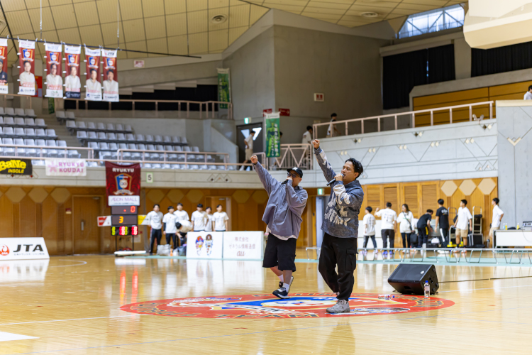 試合開始前に、午前中に開催された沖大フェスから、沖縄大学の軽音楽サークルに演奏していただき、会場を盛り上げていただきました。