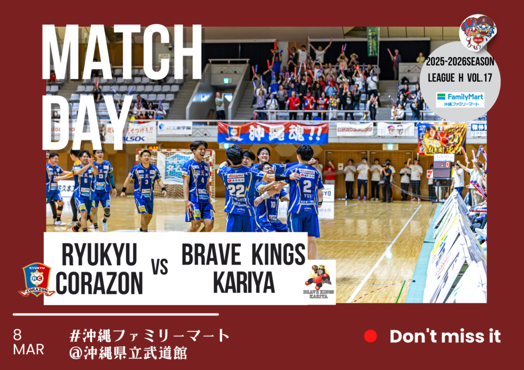 沖縄ファミリーマート様とともに、会場を盛り上げ勝利を目指して戦いますので、是非ご来場ください。